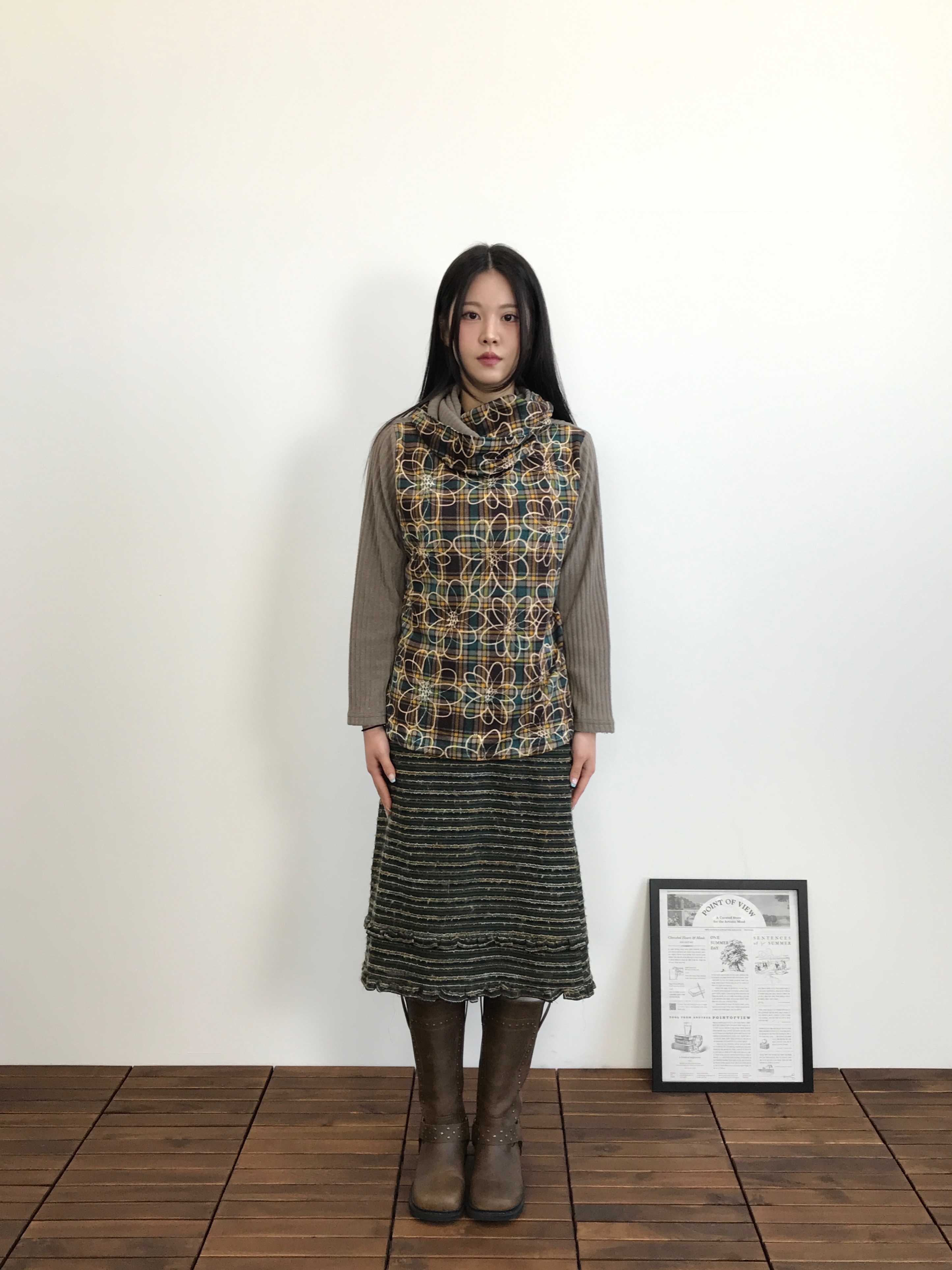 Jpn 'RUPUAU' Floral Plaid Cowl Neck Top