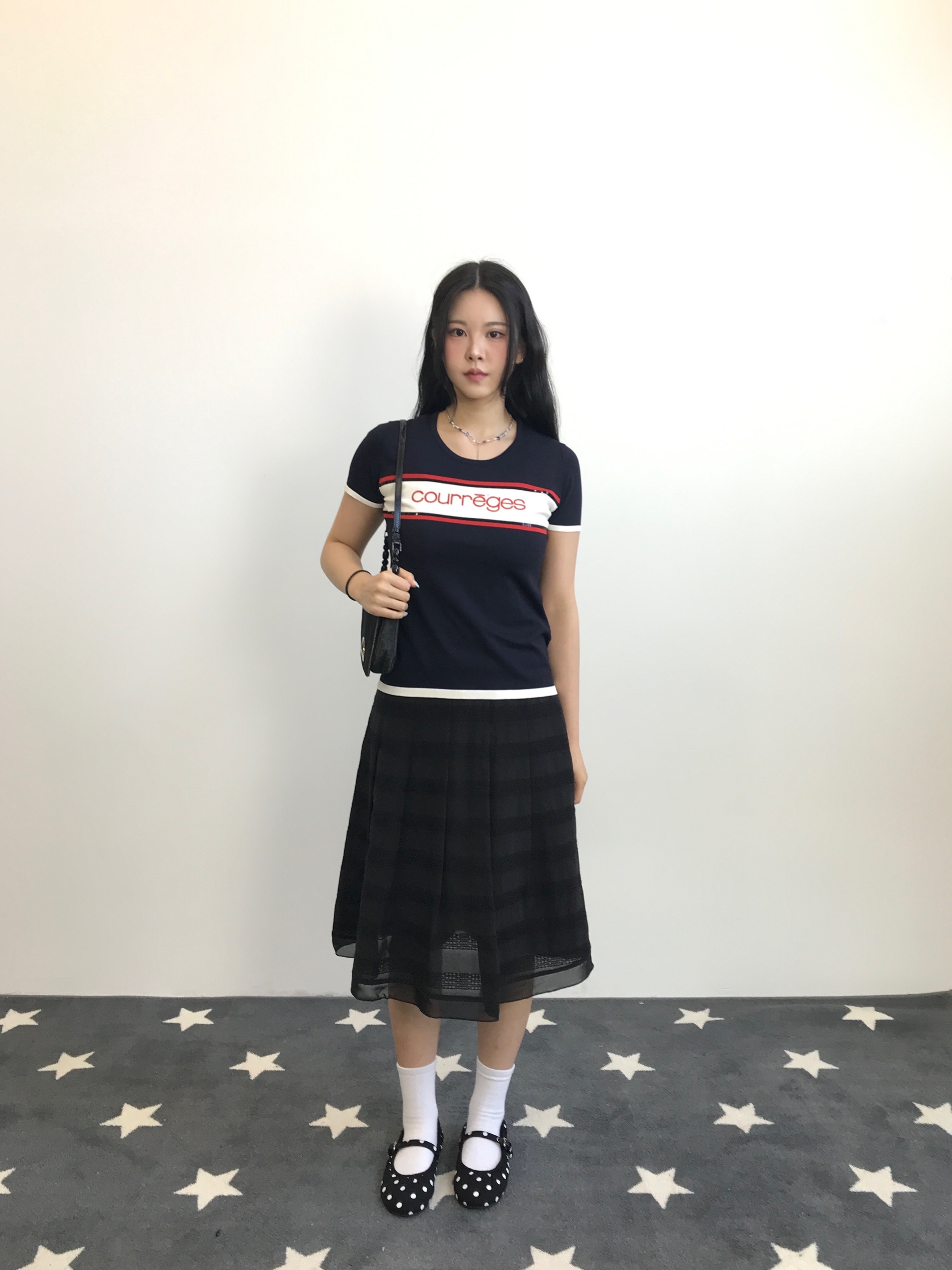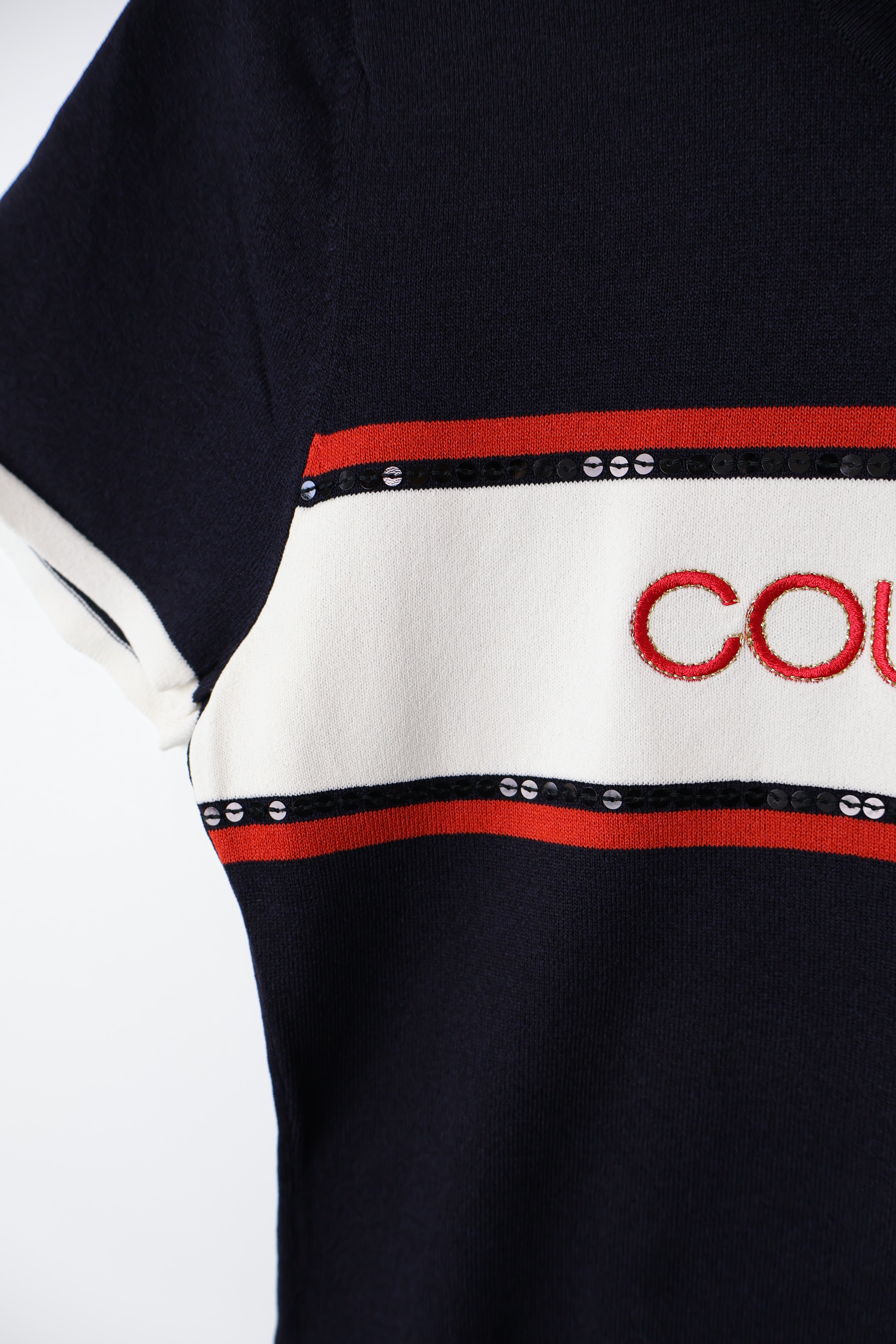 'Courrèges' Logo Sequin Trim Knit Top