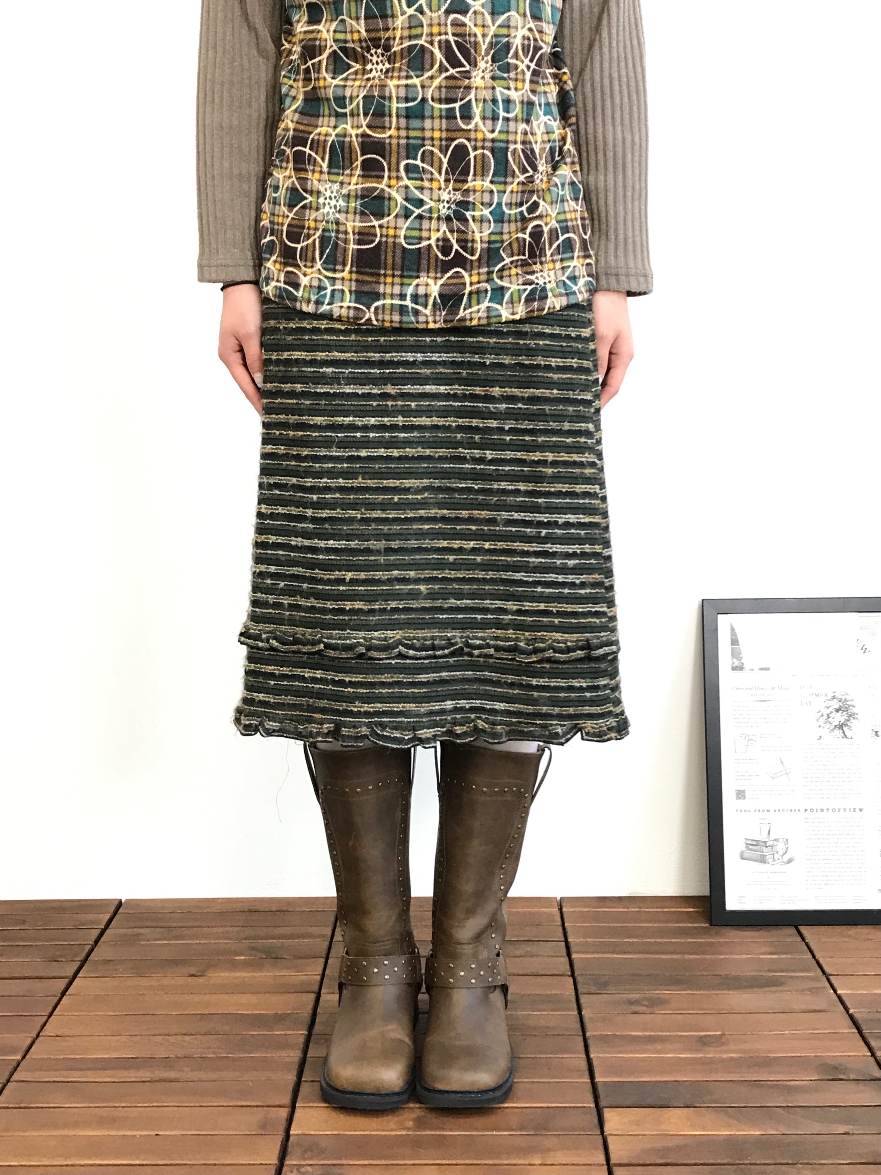 'Trans Continents' Wool Striped Midi Skirts