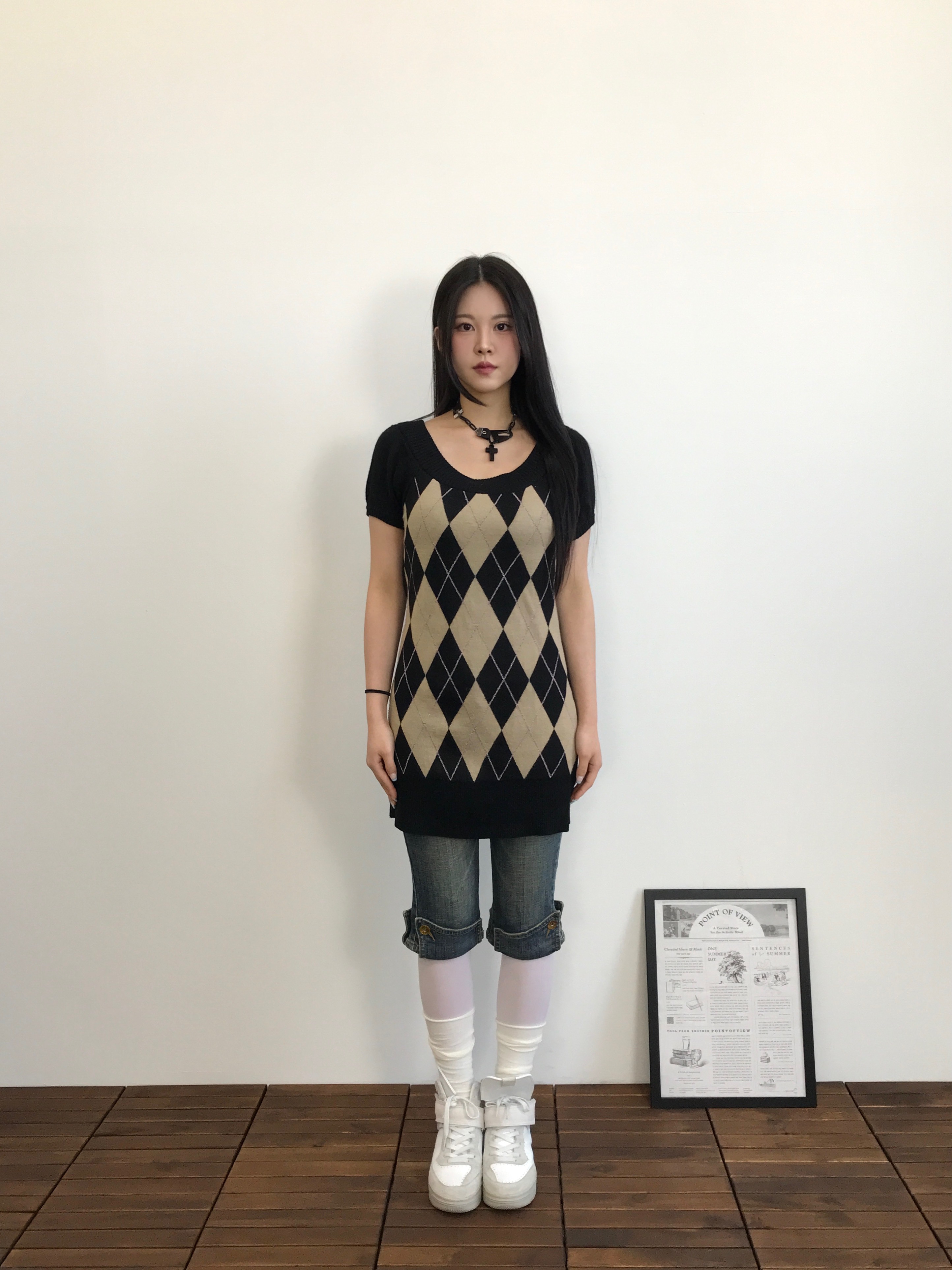'Klein Plus' Acrylic Argyle Midi Onepiece
