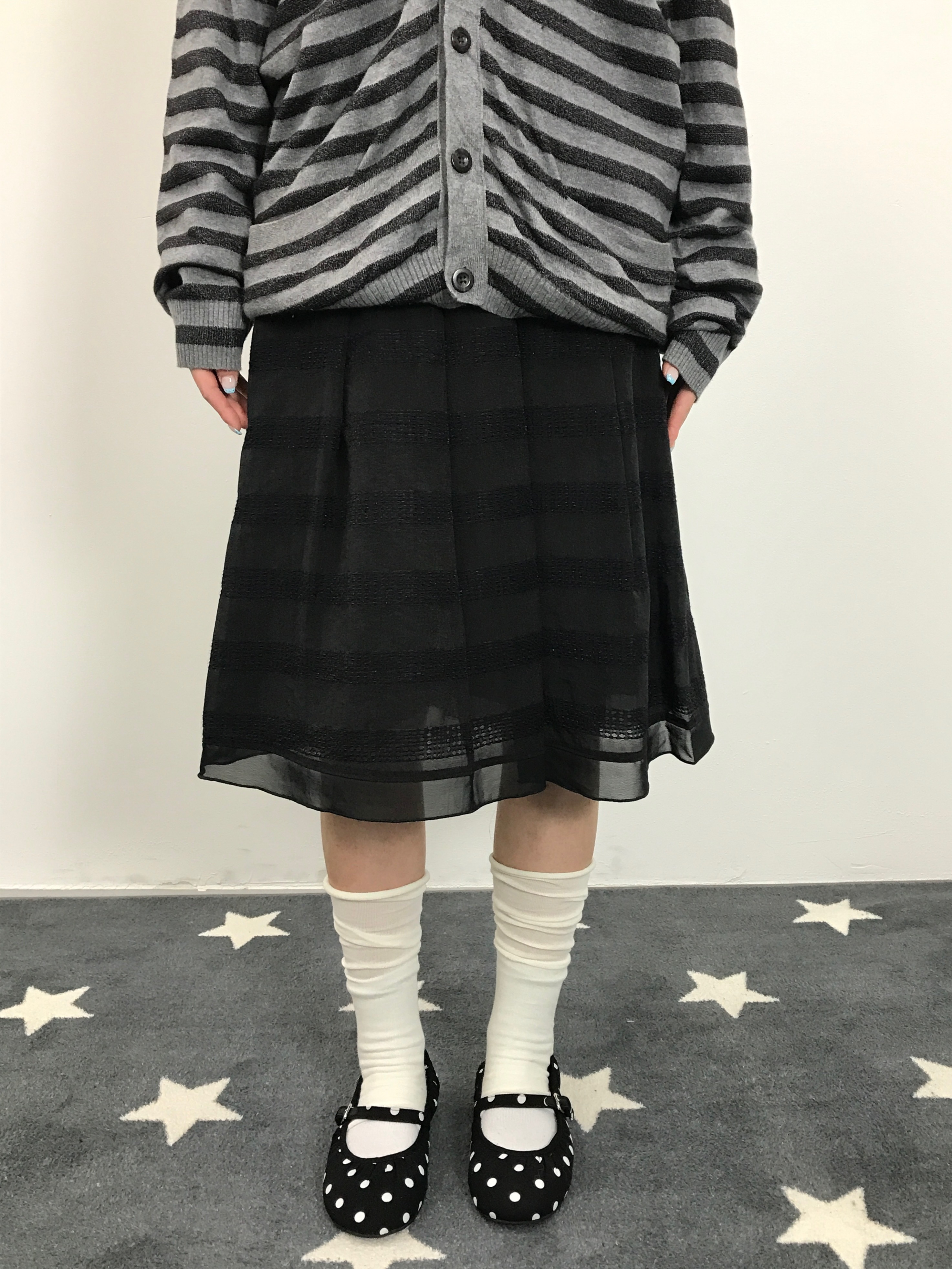 Jpn Black Nylon Striped Midi Skirts