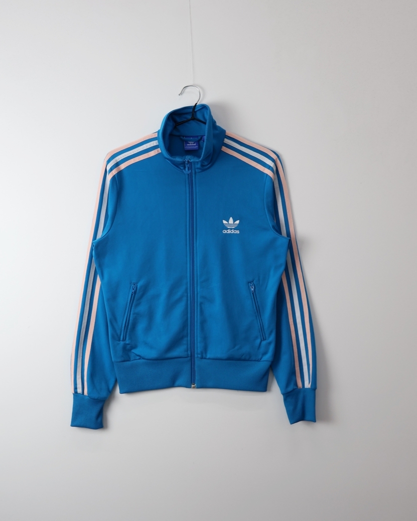 'Adidas' Originals Cyan Blue & Pink 3-Stripes Track Jersey
