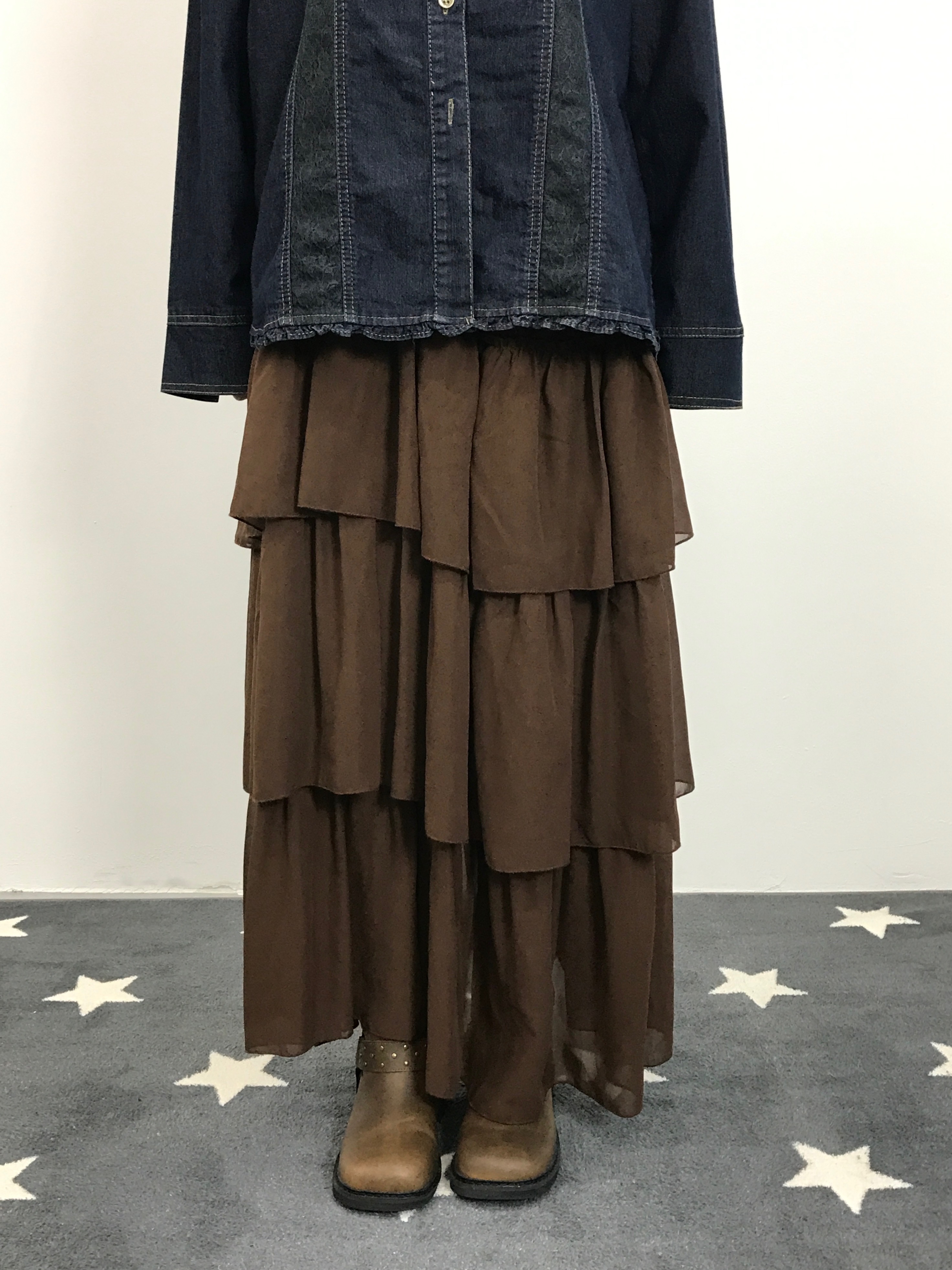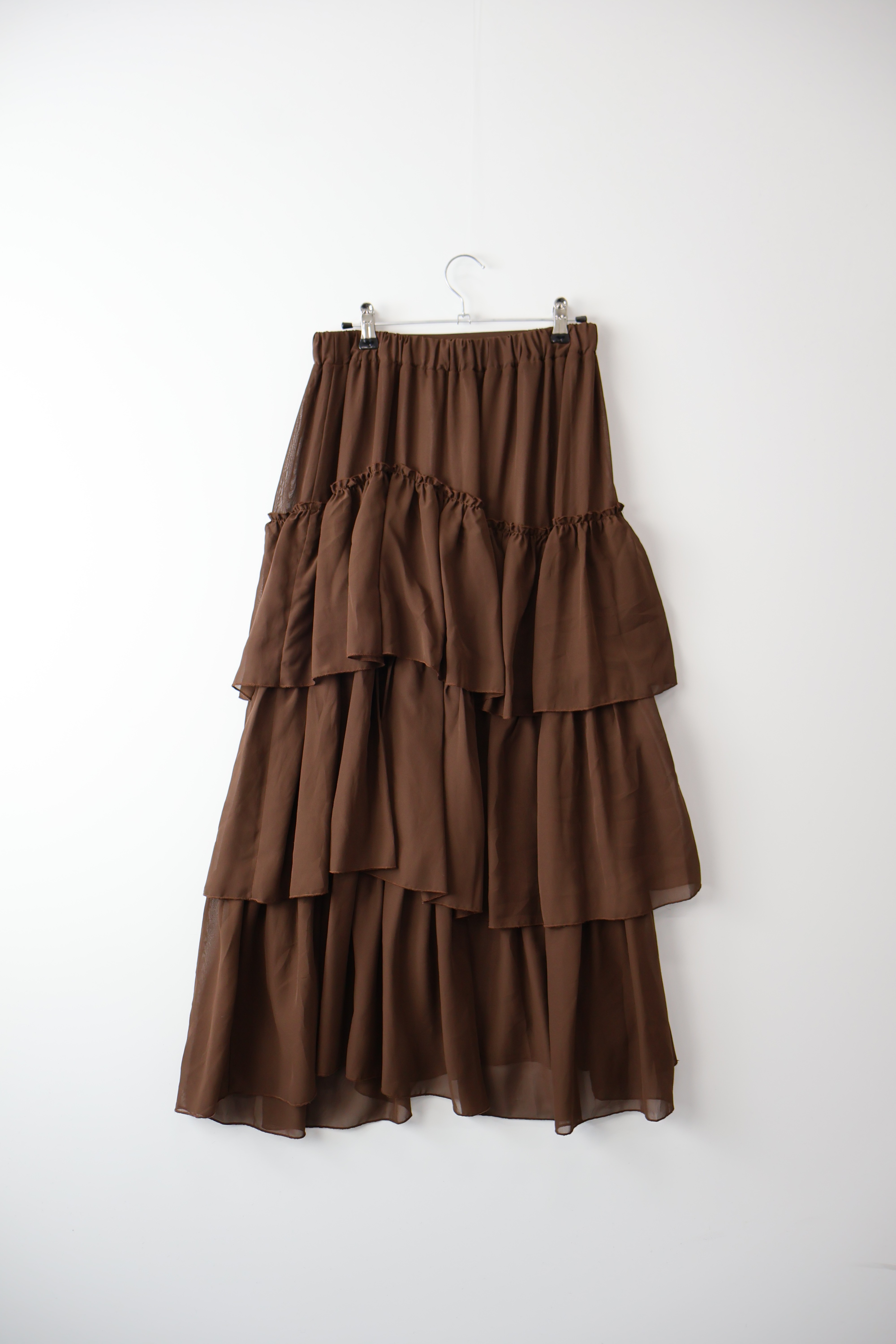 Jpn Brown Chiffon Tiered Ruffle Maxi Skirt