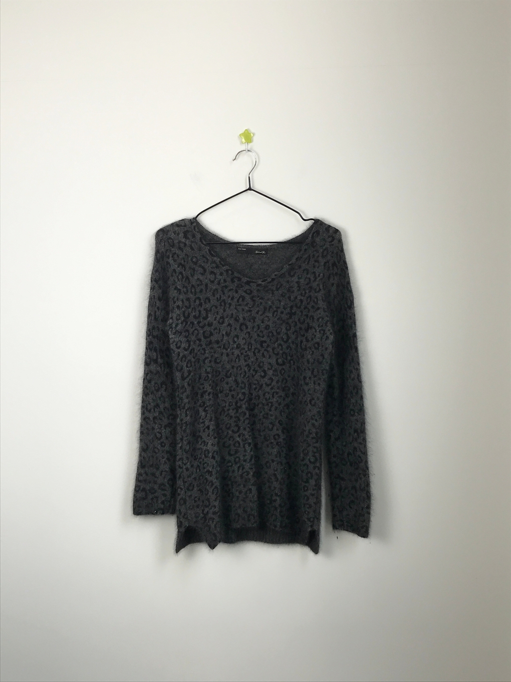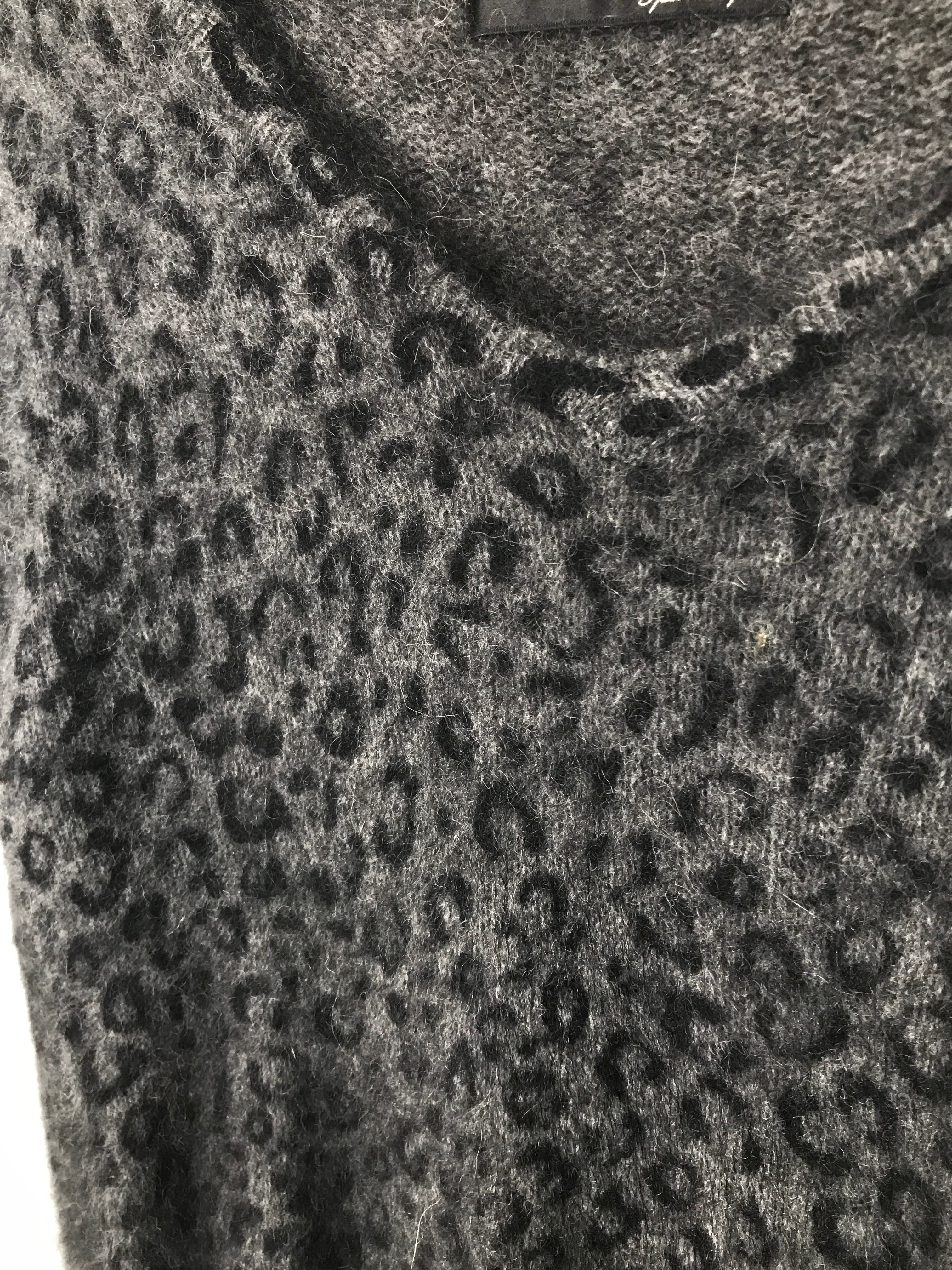 Jpn Charcoal Gray Leopard Print Fuzzy Knit Sweater