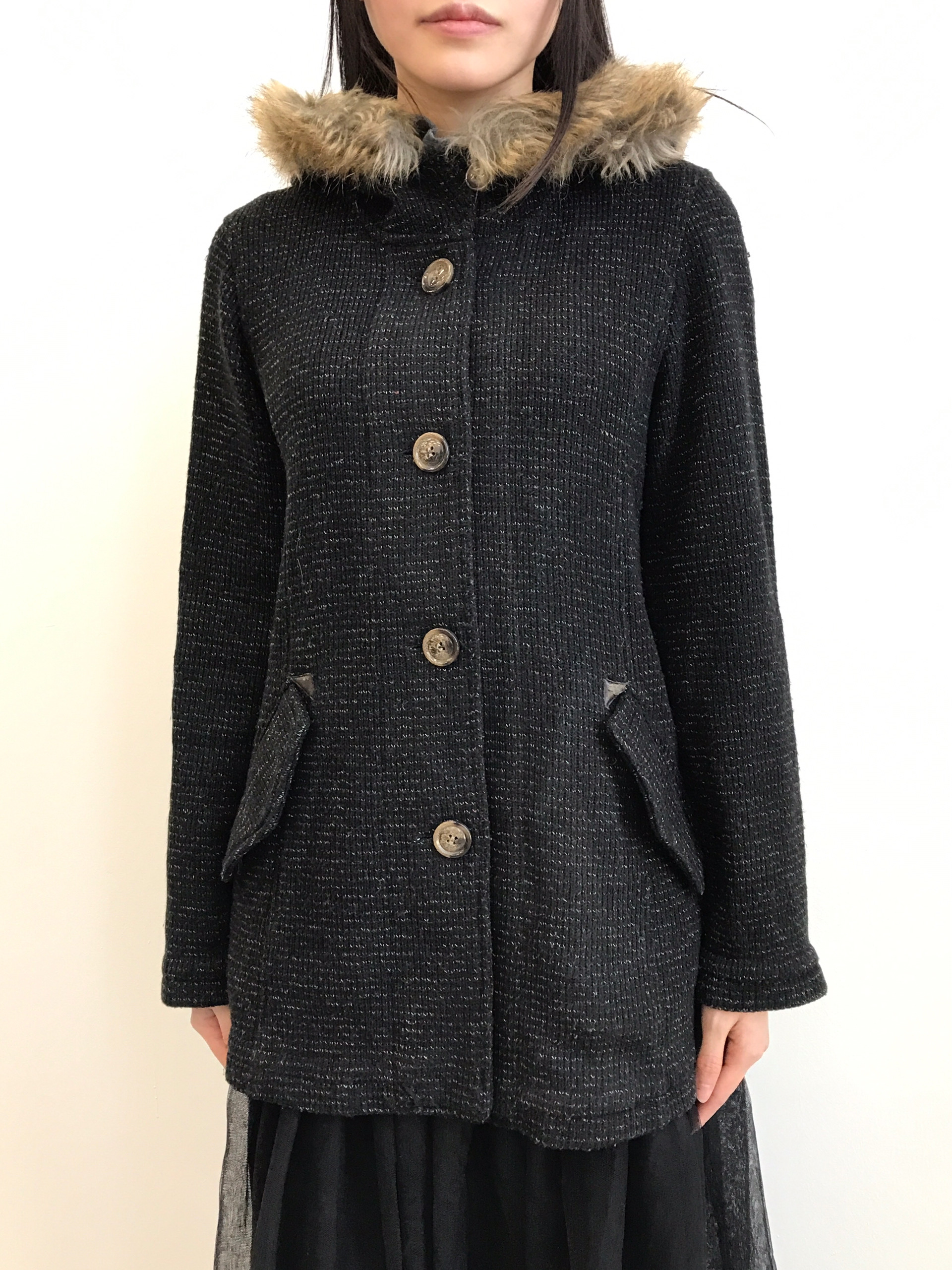 'SHOO-LA-RUE' Fur Trim Hooded Knit Coat