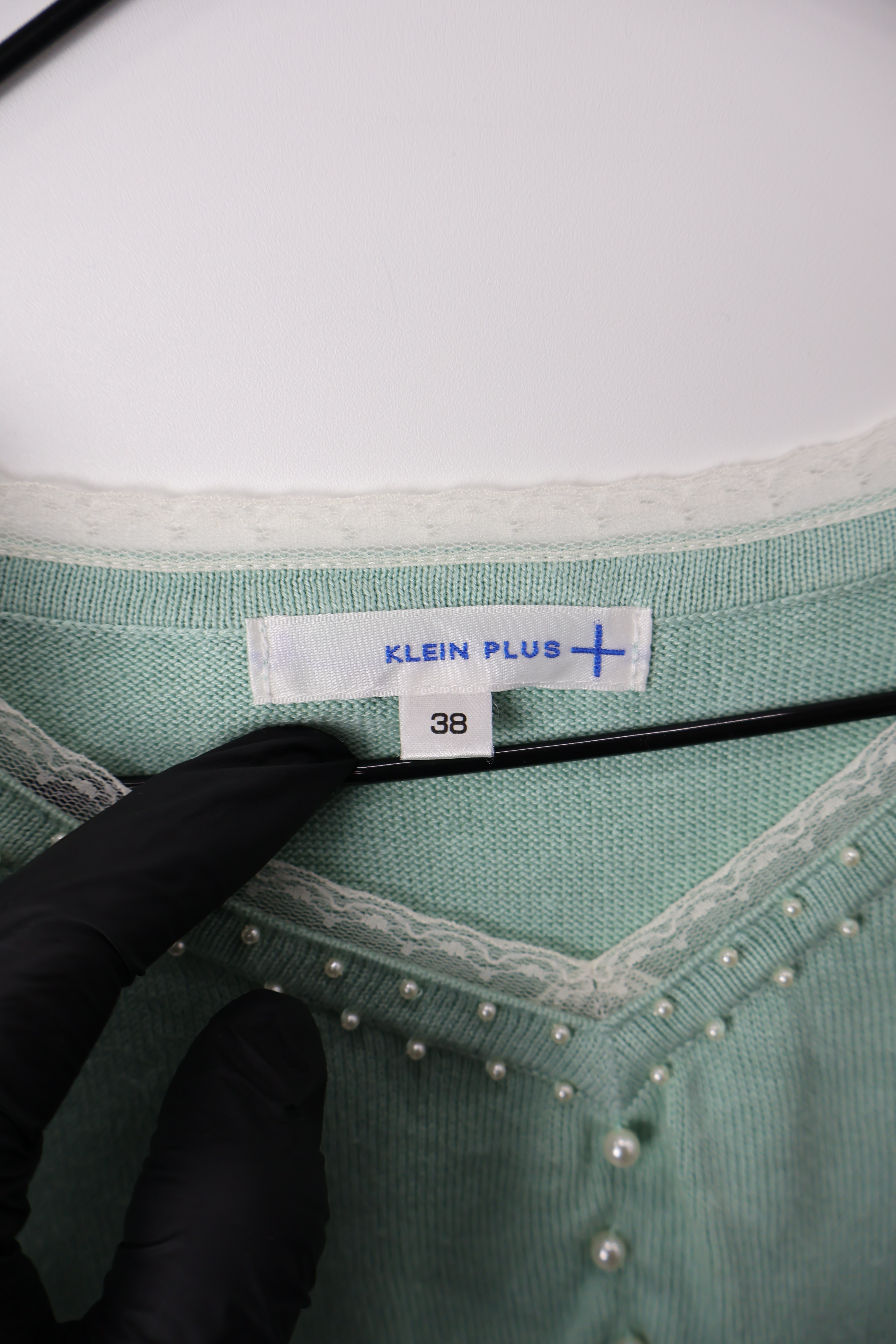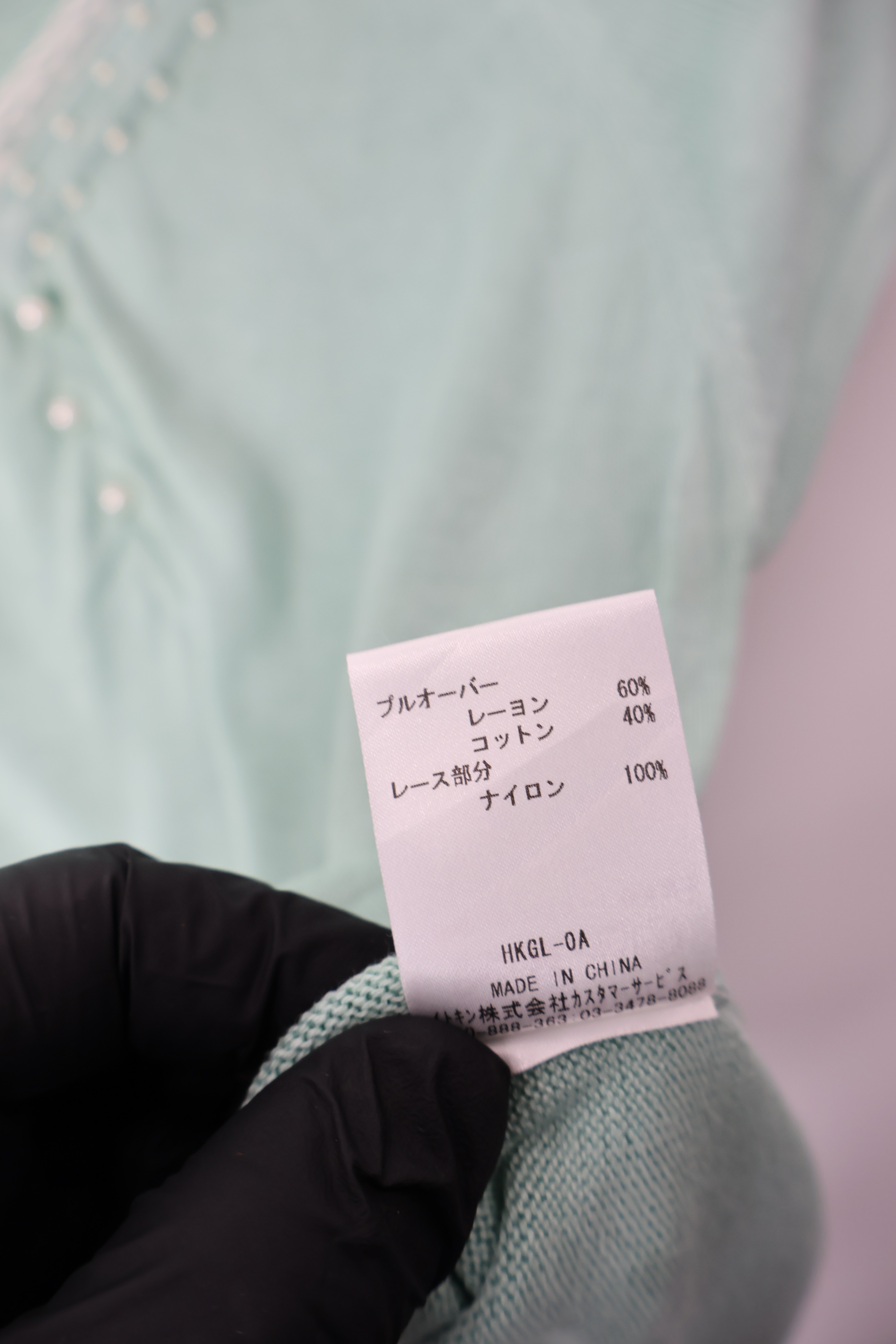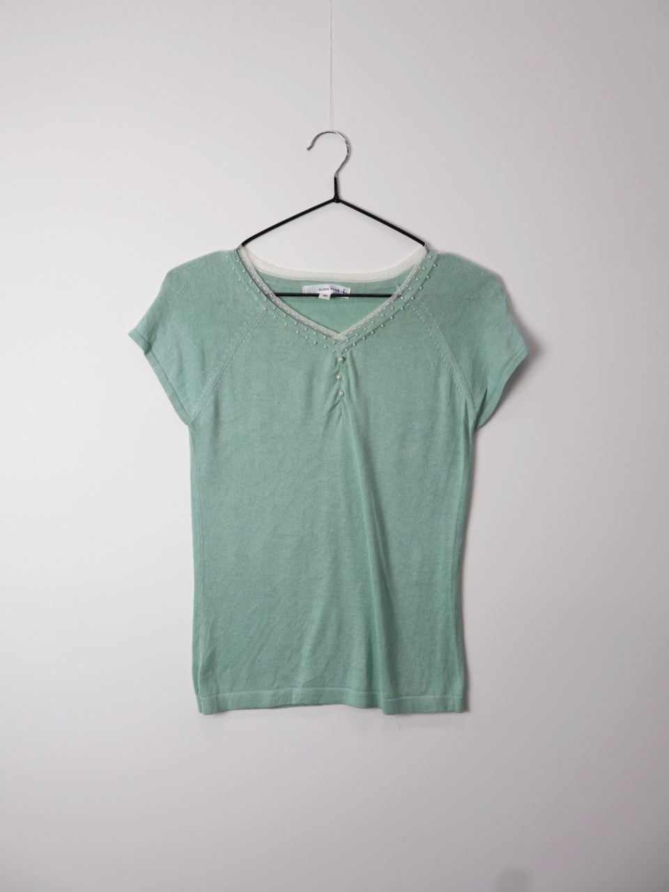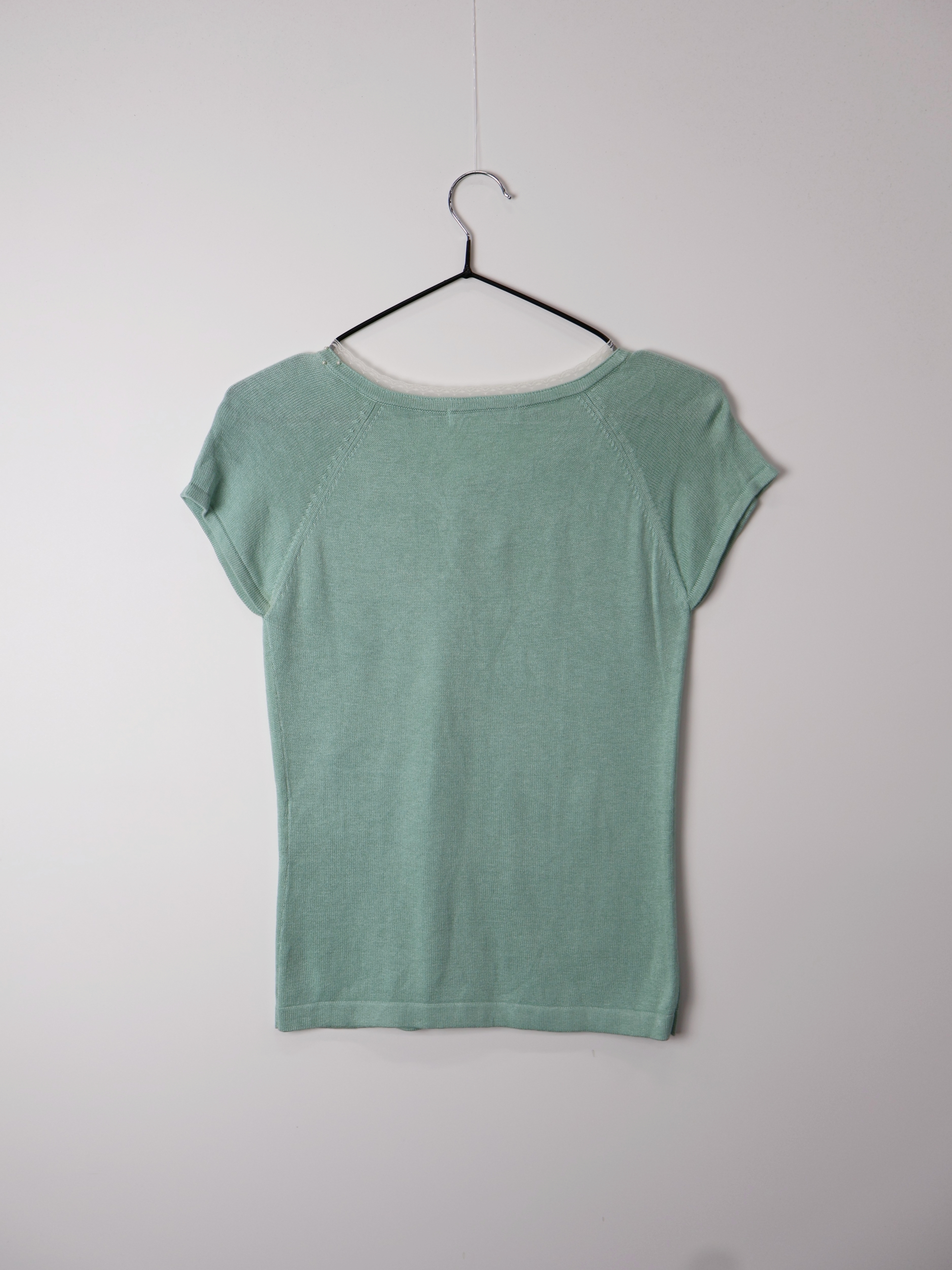 Jpn Mint Lace Trim Pearl Button Knit Top