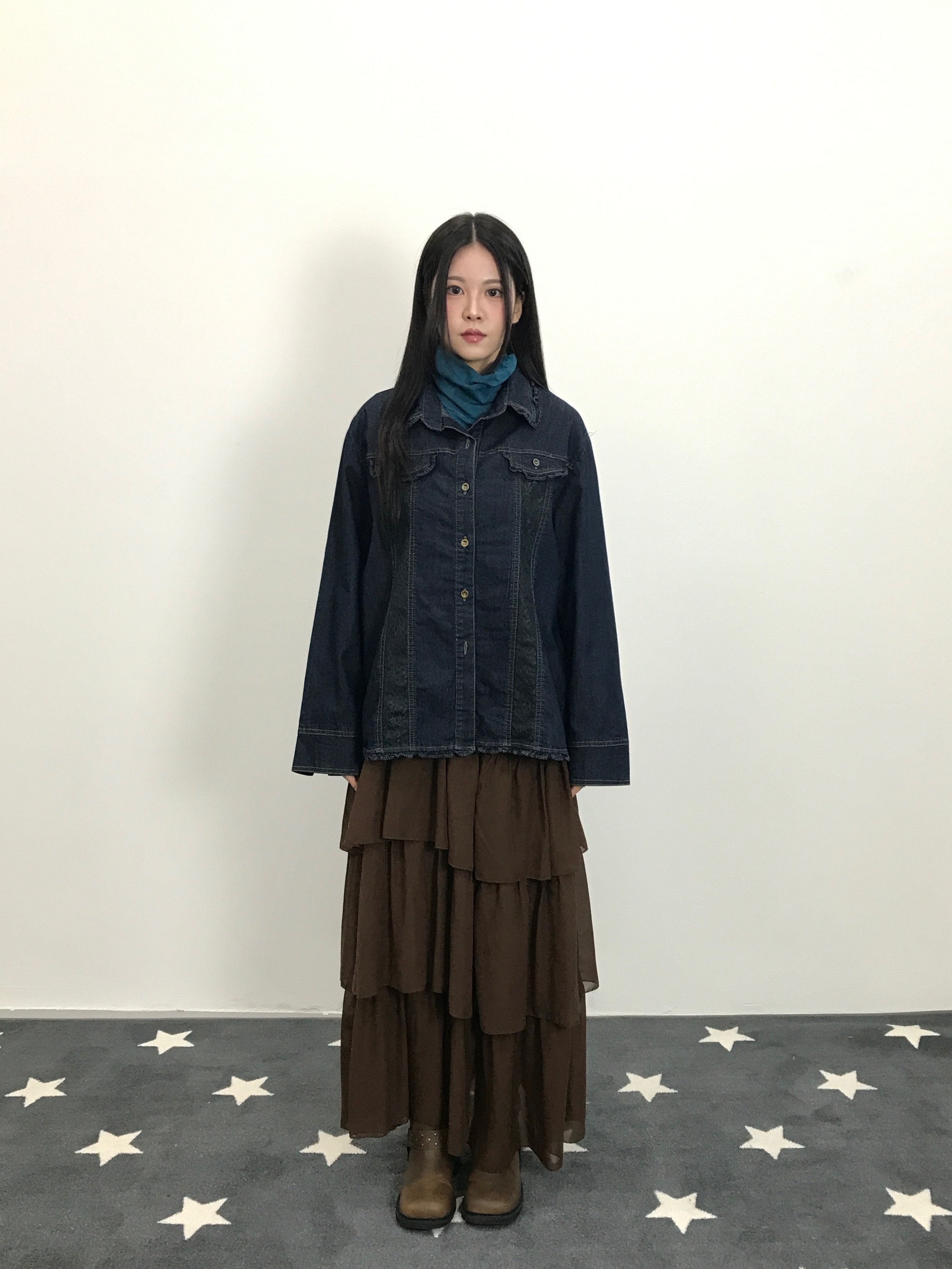Jpn Gracious Denim Lace Panel Shirt Jacket