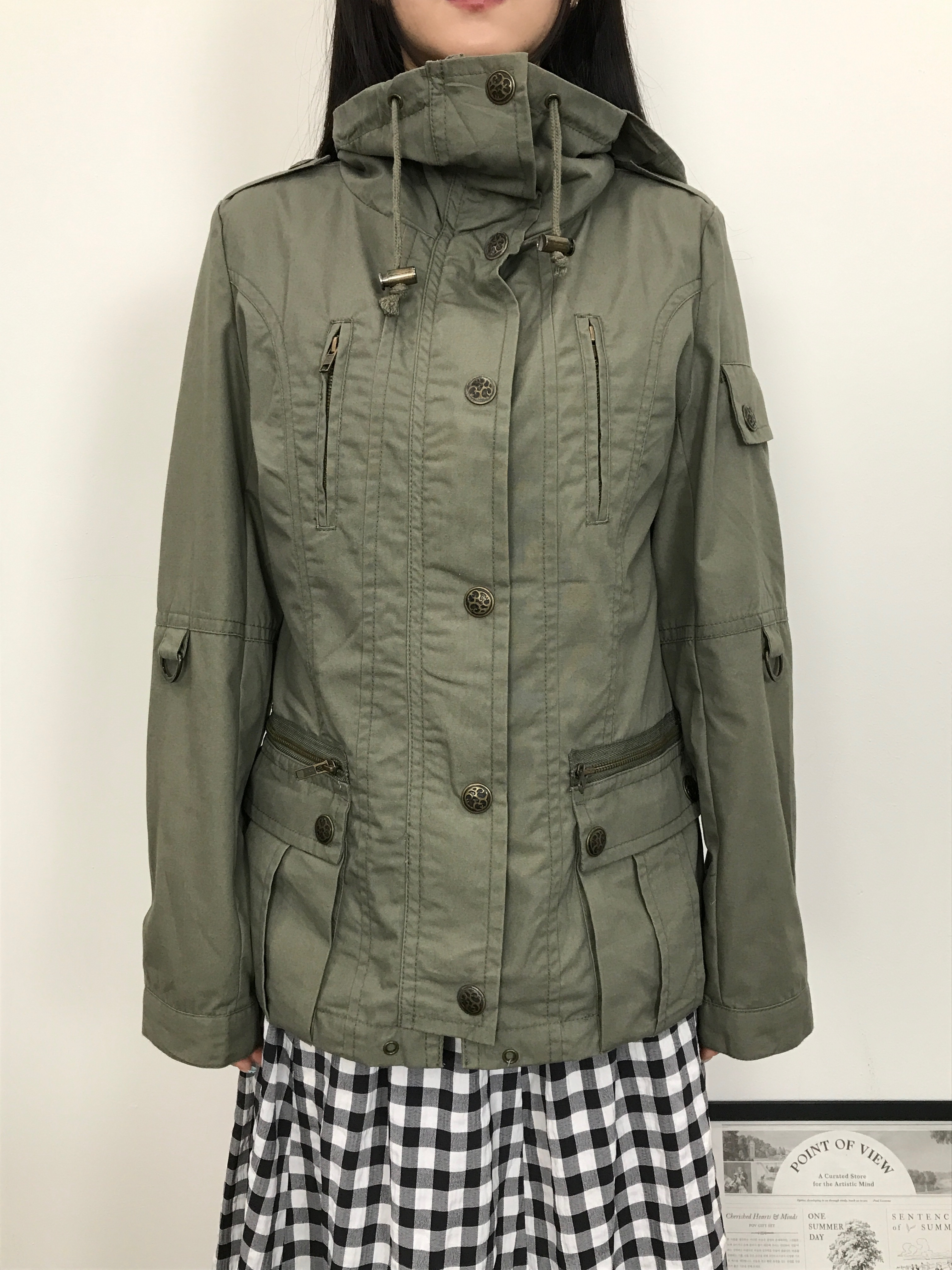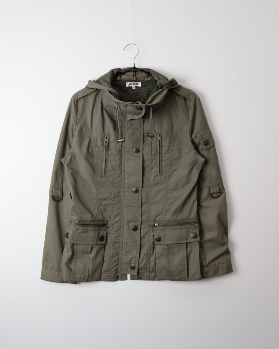 'CLEF DE SOL' Khaki Utility Hooded Jacket