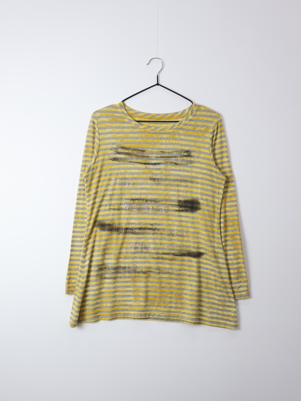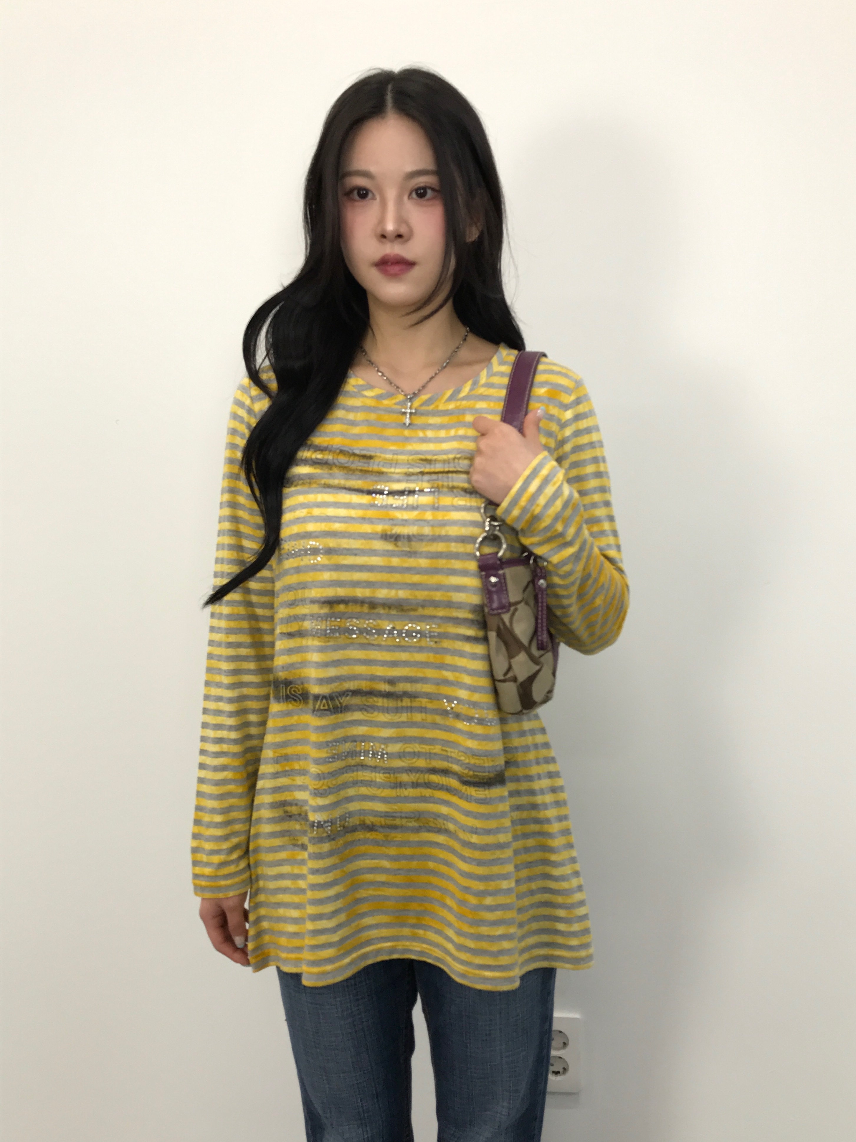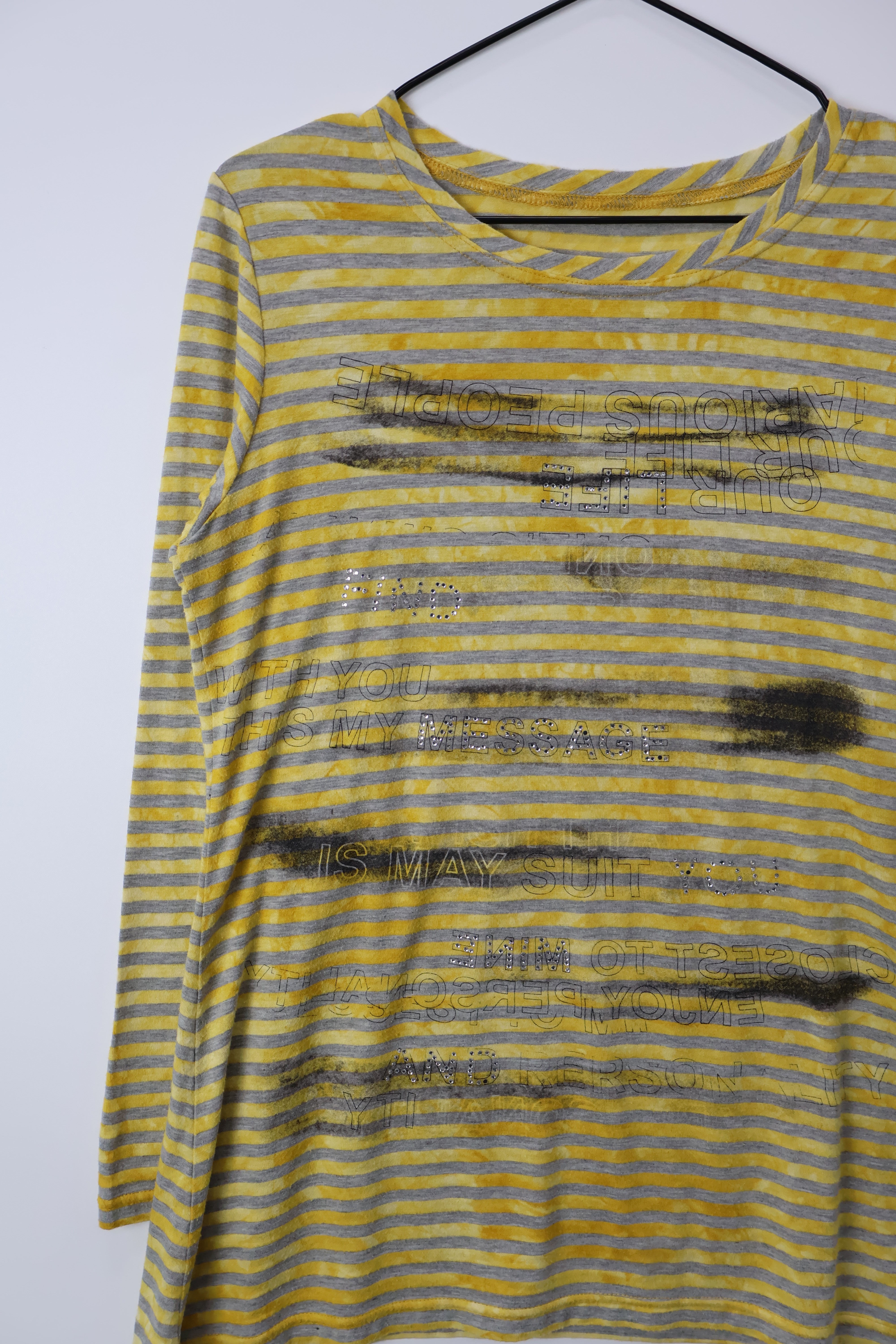Jpn Y2K Grunge Acid Wash Yellow Striped Long Sleeve