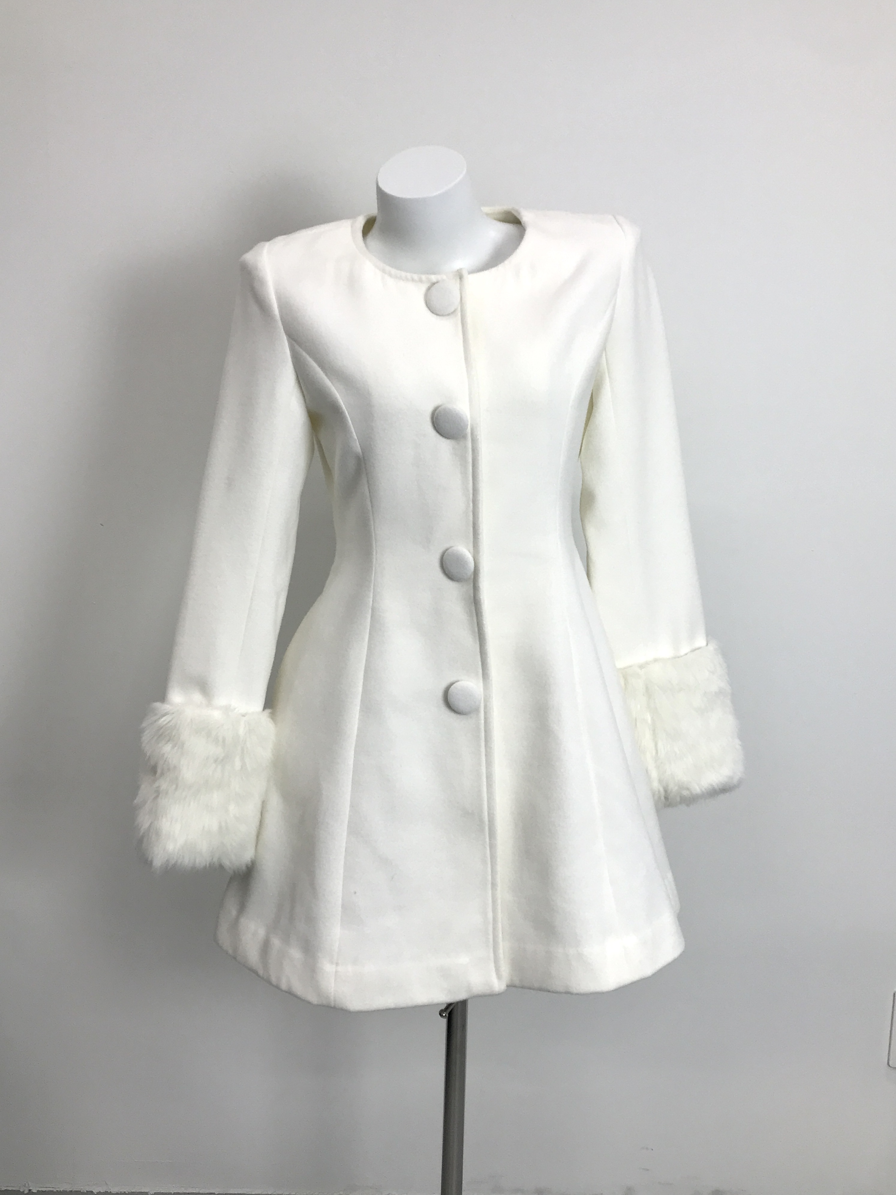 'CECIL McBEE' Fur Cuff No-collar A-line Coat