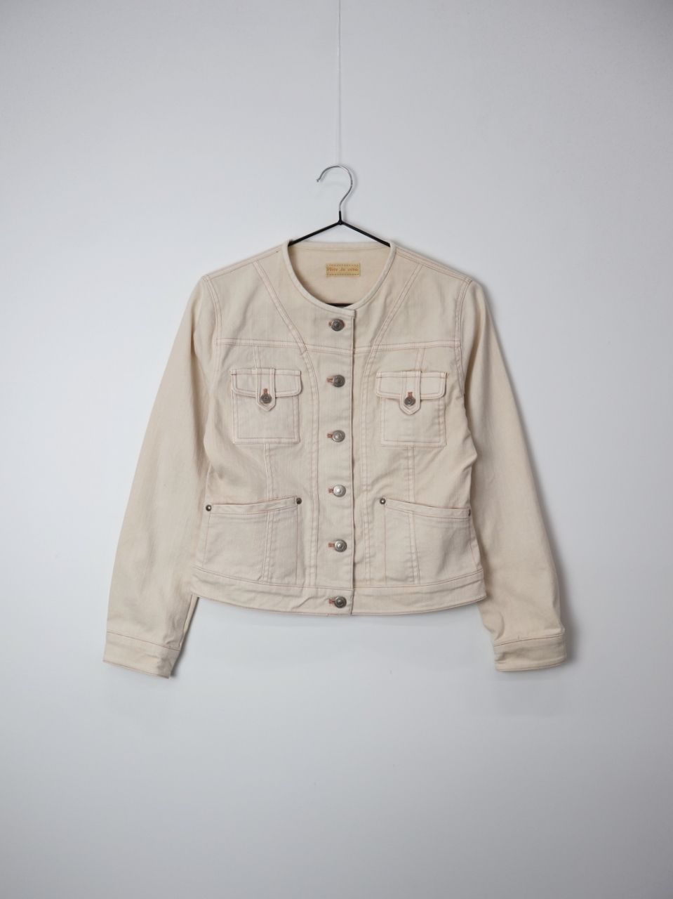 Jpn Cream Collarless Cotton Jacket