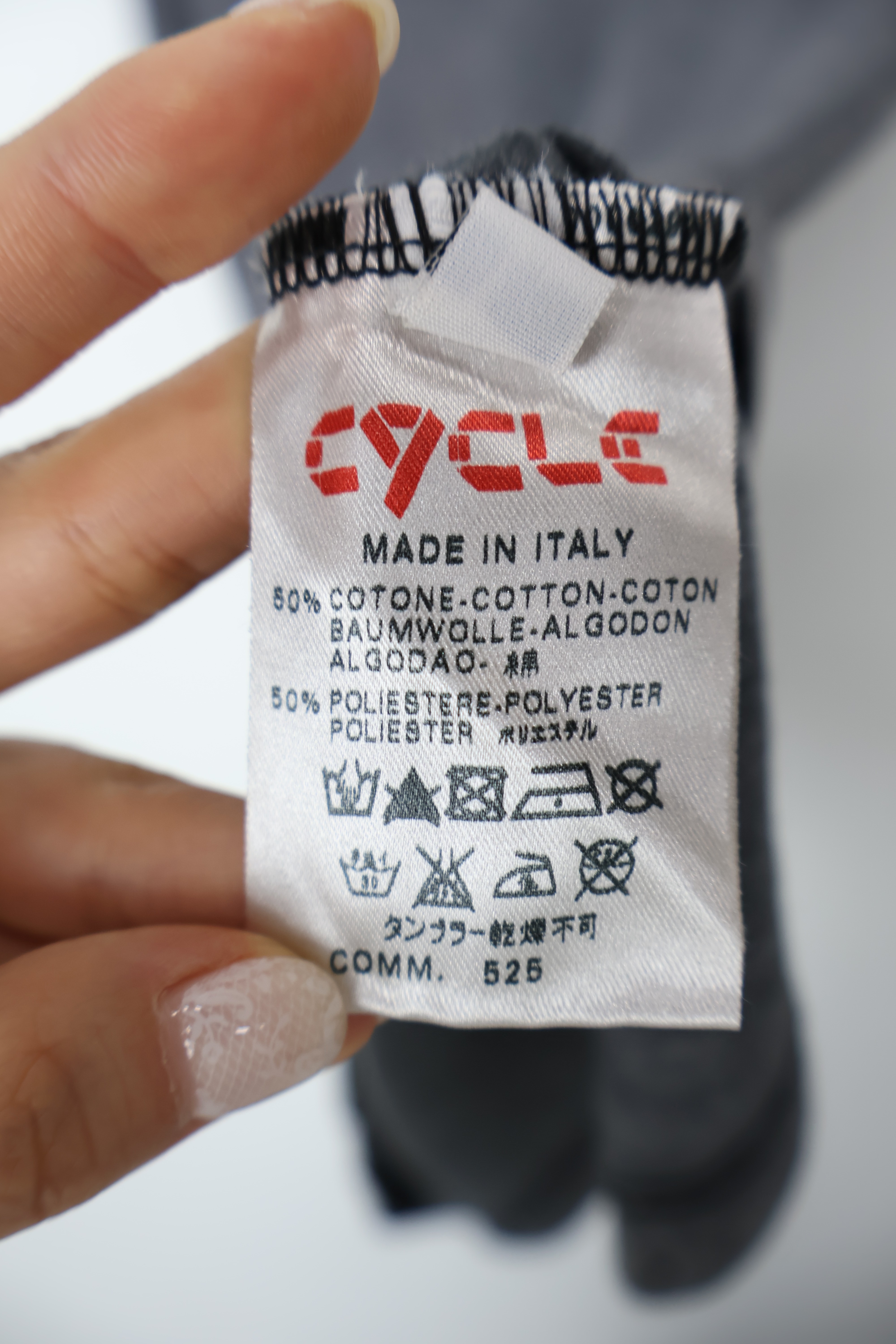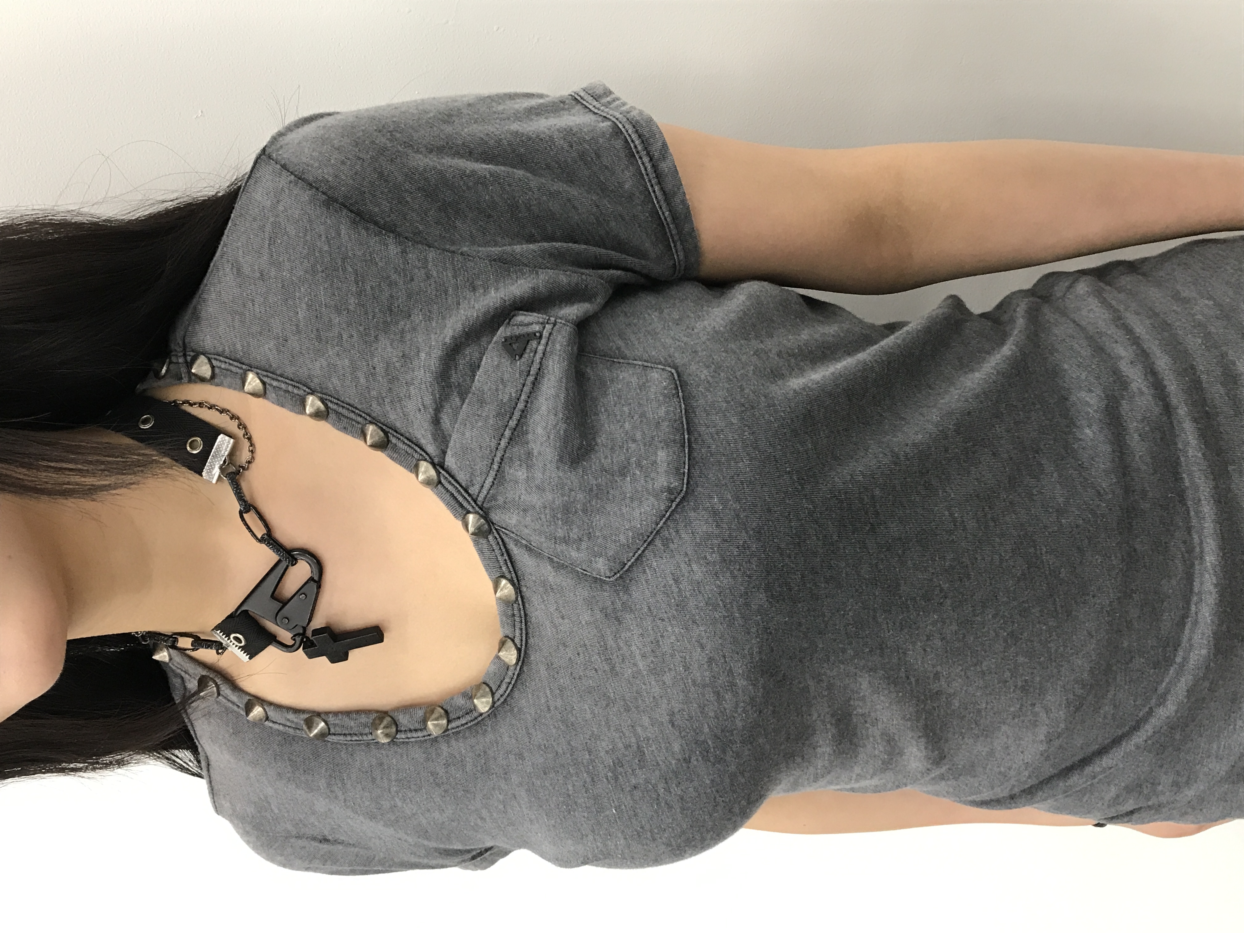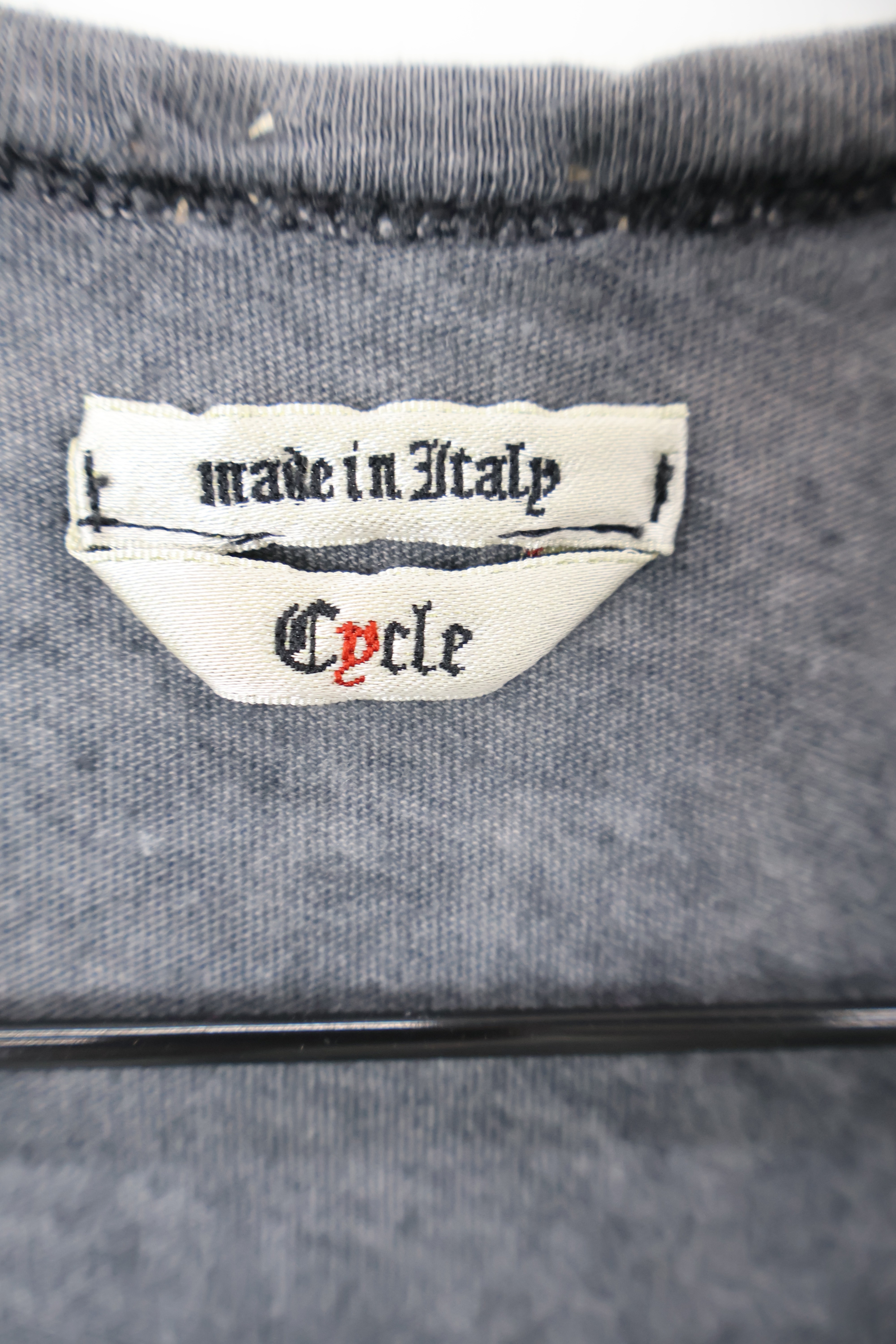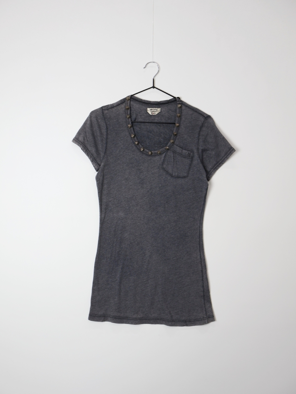 'Made Italy' Washed Charcoal Studded Neck Tee