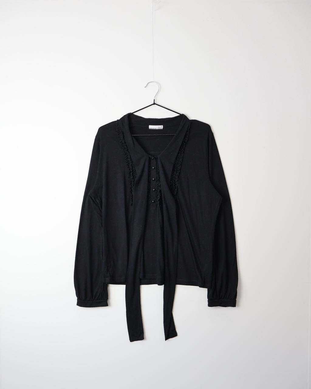 Jpn Dark Coquette Black Long Sleeve Ribbon Top
