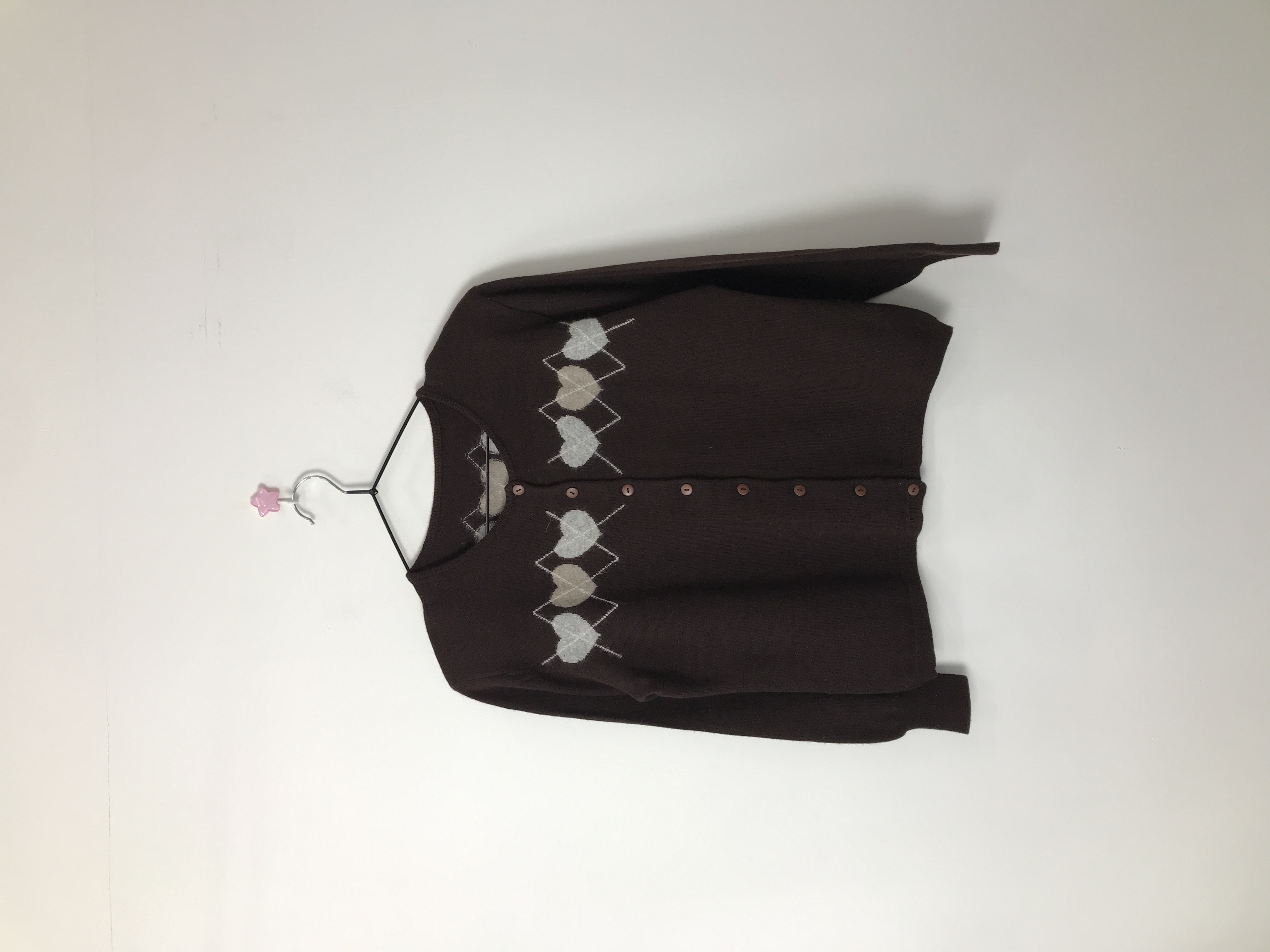 Jpn Brown Heart Argyle Wool Cardigan