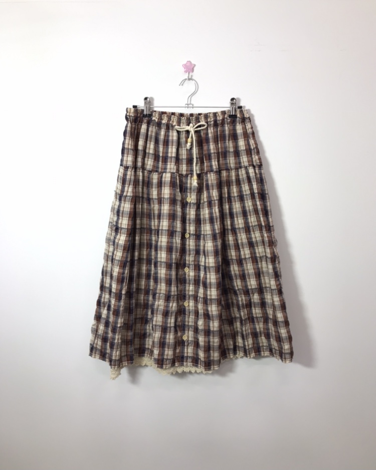 Jpn Mori girl Brown Plaid Tiered Maxi Skirt