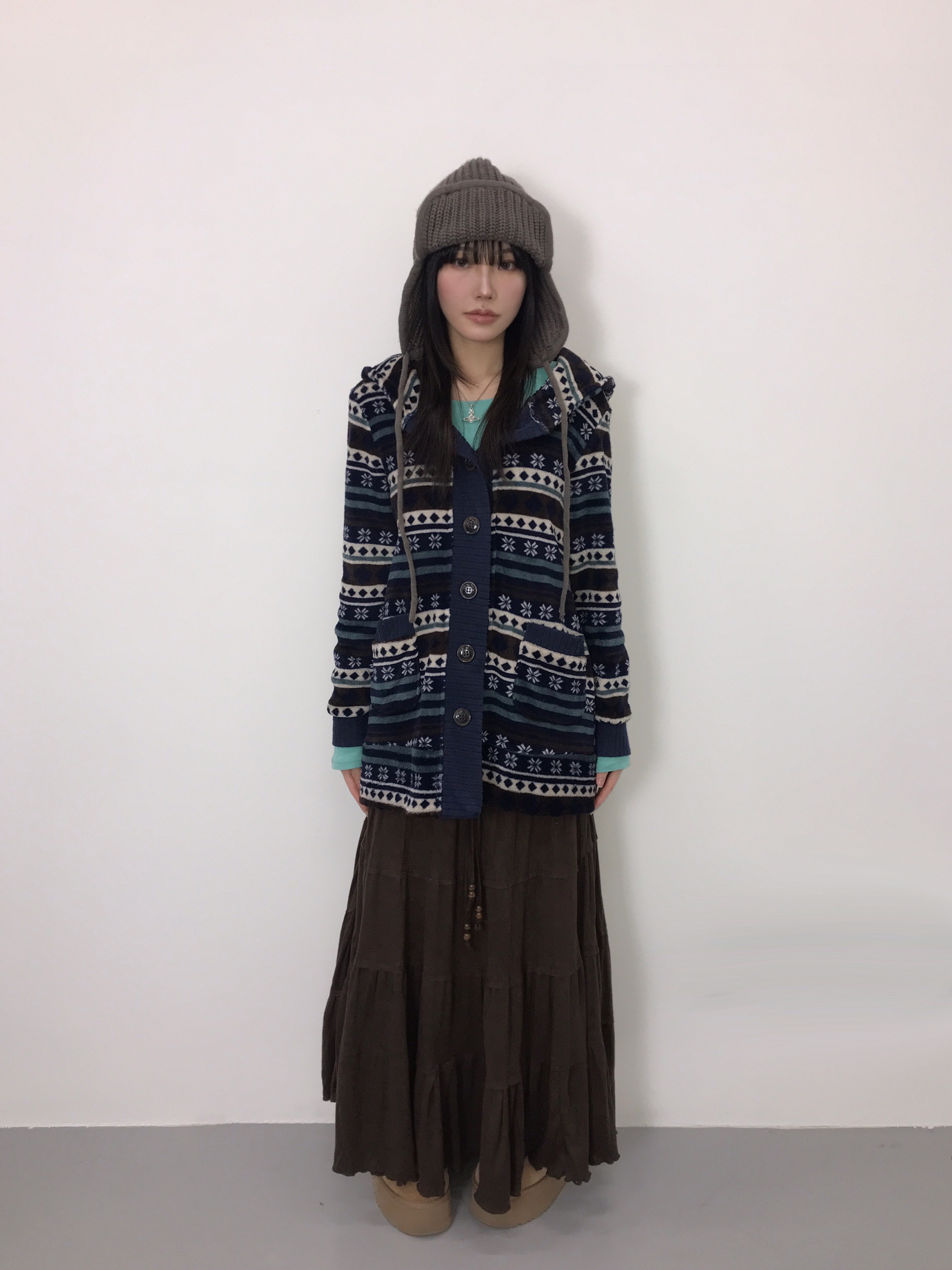 Jpn Nordic Pattern Hooded Fleece Cardigan