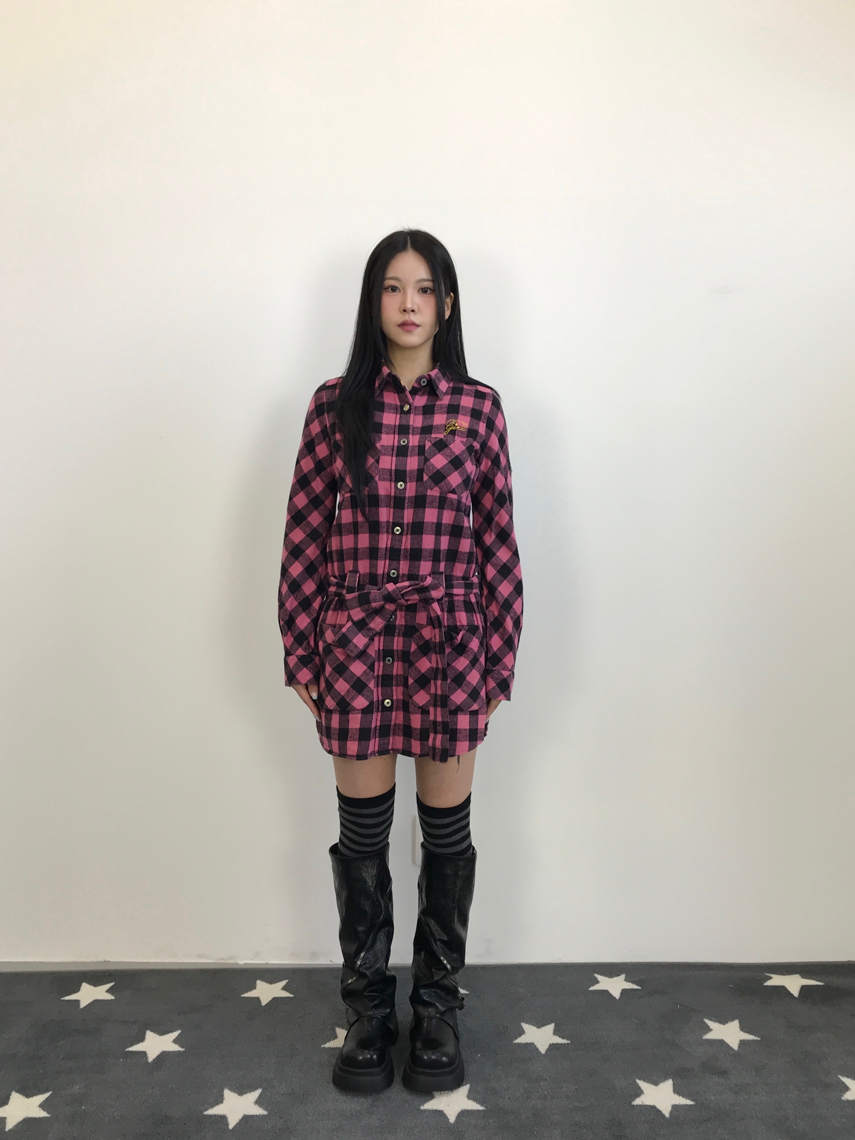 'tommy girl' pink check flannel shirt onpiece♡